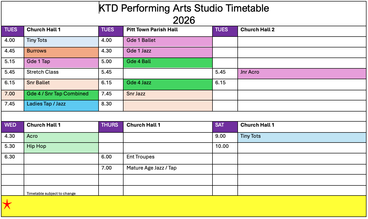 Timetable - 2026